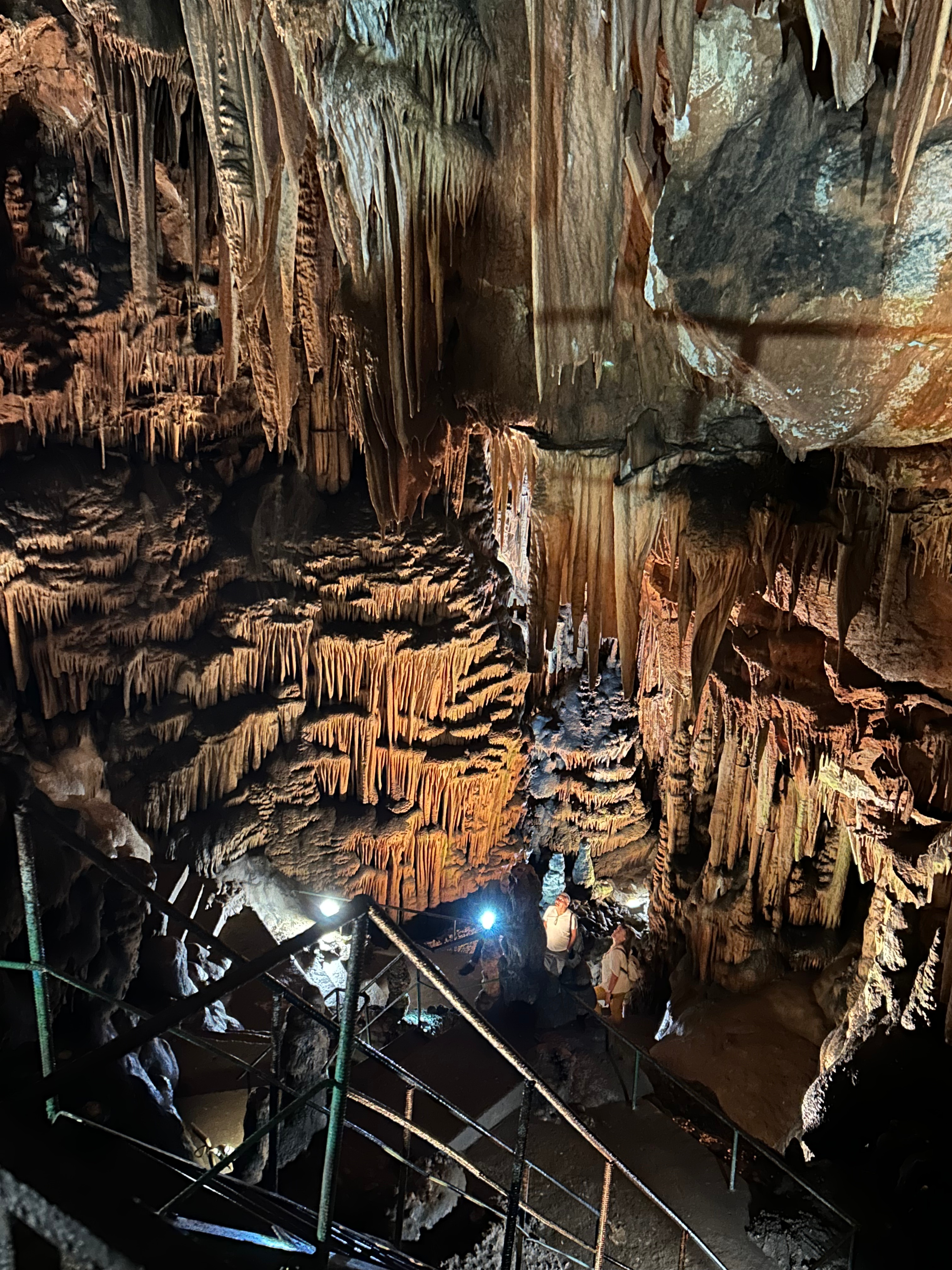 Как же определили её возраст? По сталактитам и сталагмитам. Эти гиганты растут очень долго, всего один сантиметр за 150 лет, а периметр самого большого -60 метров. Так и вычислили возраст пещеры. Благодаря причудливым формам и размерам сталактитов, один из залов похож на известный собор Саграда Фамилия в Барселоне. Вместе со специальной подсветкой и акустикой-это такое торжественное зрелище! Именно поэтому в нем проводят концерты. Здесь так приятно в жару, что даже уходить не хочется.