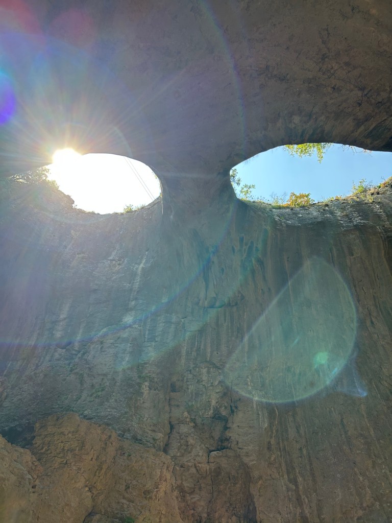 «Очите на Бога»- одна из самых красивых и больших пещер в Болгарии. Ее размеры поражают еще у самого входа, но внутри вас ждет еще более впечатляющее зрелище: большие миндалевидные отверстия в 45-и метровом своде, в которых любой человек угадает очертания глаз. Из этих глаз льется небесный свет и создается впечатление, что сам Господь или Вселенная-назовите это как хотите- наблюдает за каждом шагом, куда бы вы не пошли. Это невероятно! Невольно возникает какое-то мистическое чувство, когда видишь такое чудо Мироздания. Как-будто эти глаза объединяют небо и землю.