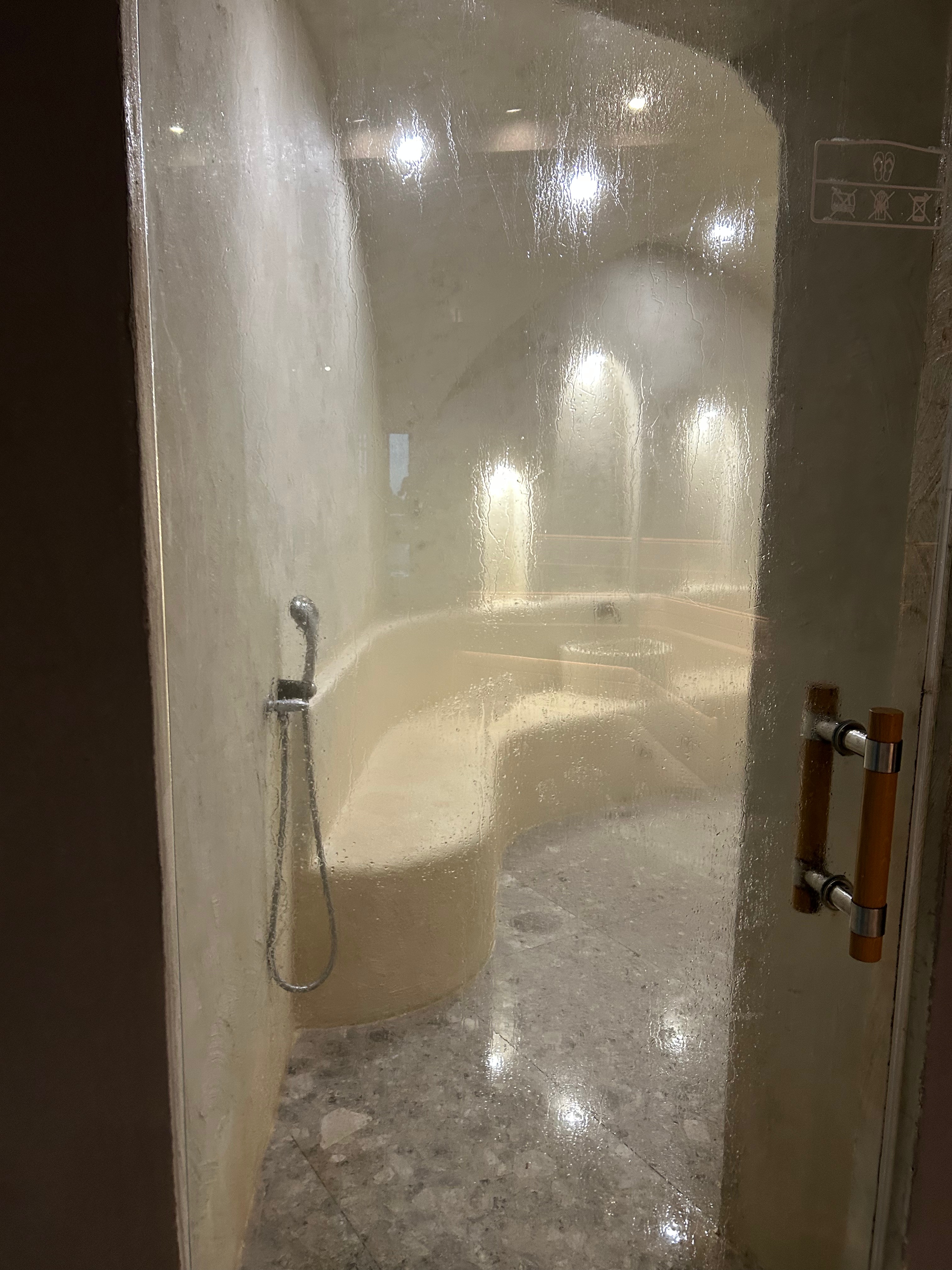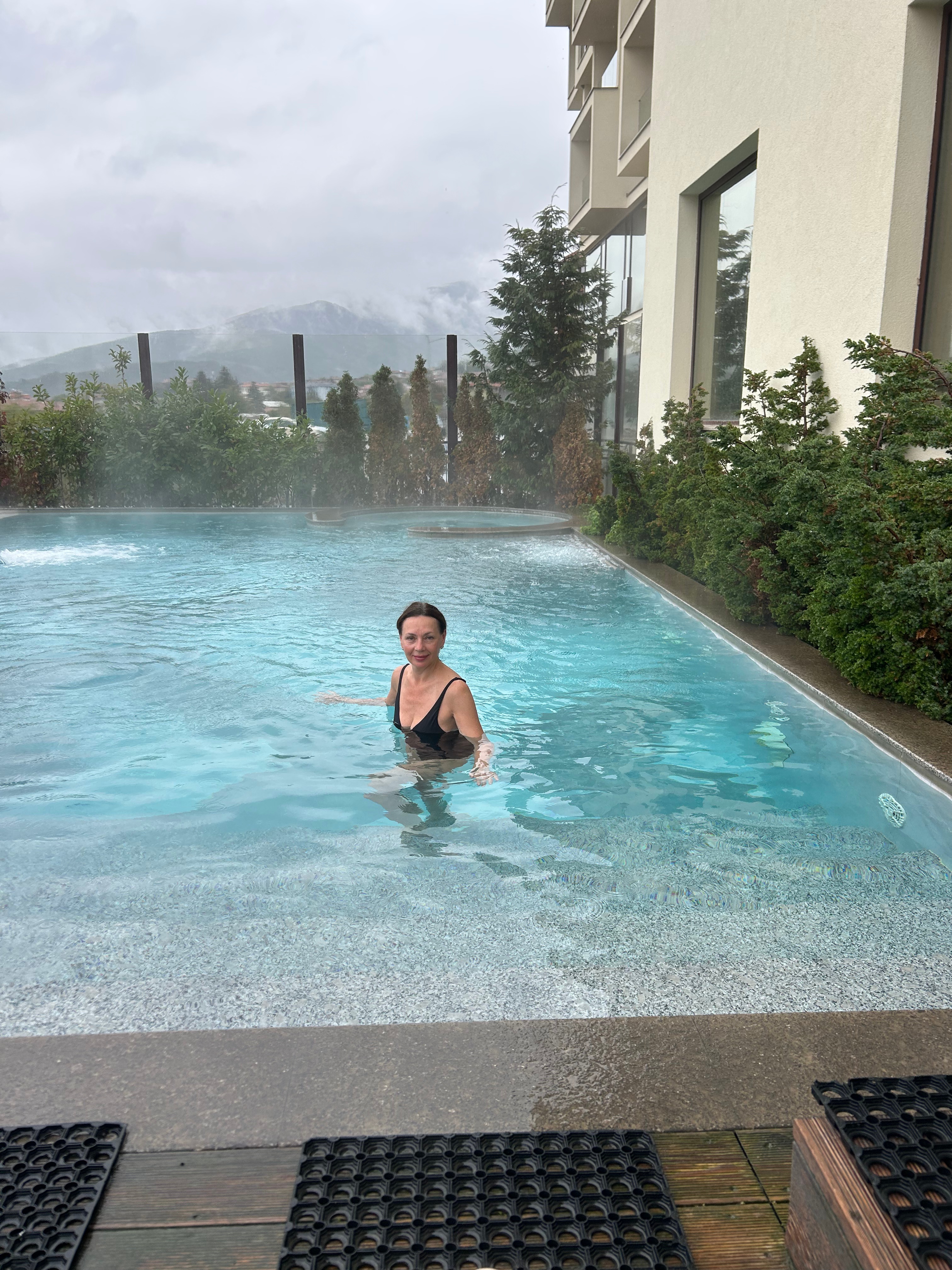 комплексе, где есть несколько термальных бассейнов с различной температурой воды: от прохладных 25 до горячих 40 градусов, спа с саунами, турецкими и римскими банями, и ресторан со вкусной едой.