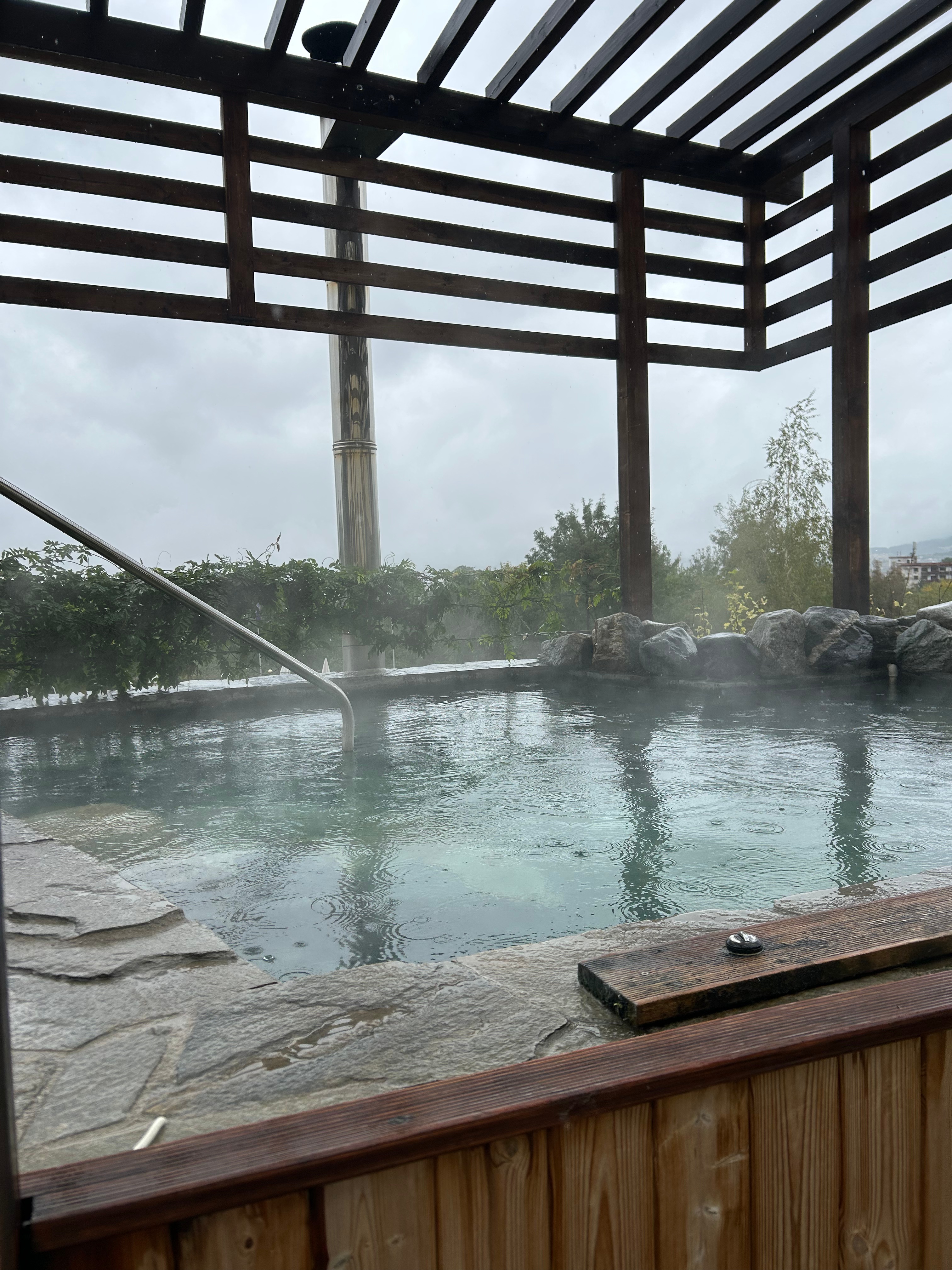 Большинство бассейнов здесь поддерживают температуру 40-42 градуса, и это достаточно горячо даже зимой. В них приятно просто посидеть, расслабиться и наслаждаться купанием, особенно, когда на улице дождь и холодно, как сегодня.