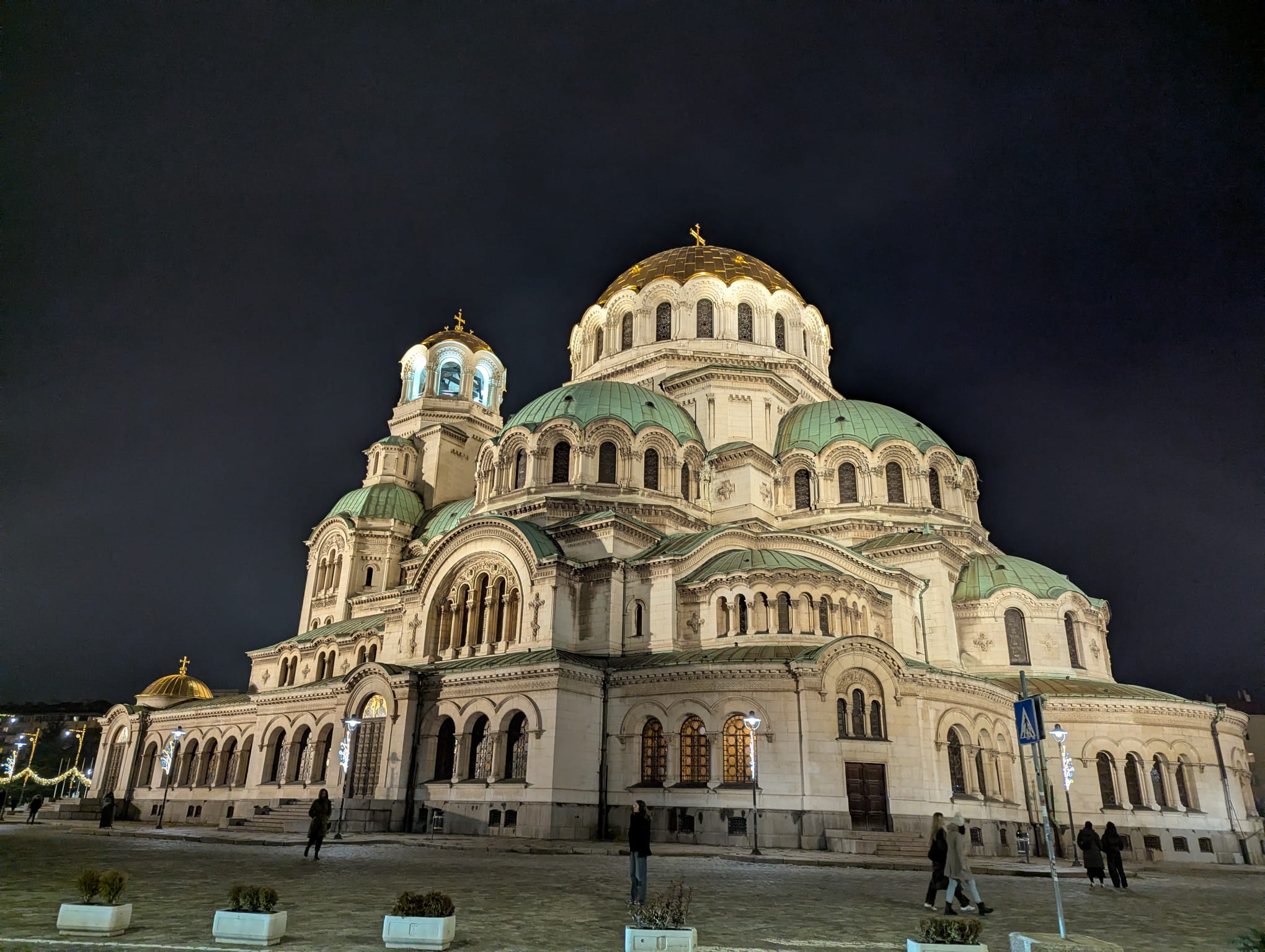 Русская церковь в Софии. Построенная в 19-м веке, она отражает красоту русской духовной архитектуры, с её характерными элементами-куполами, присущими только нашей традиции. Она прекрасно иллюстрирует, как византийское наследие переживает века и адаптируется под новые исторические контексты.